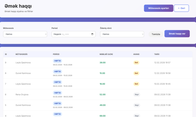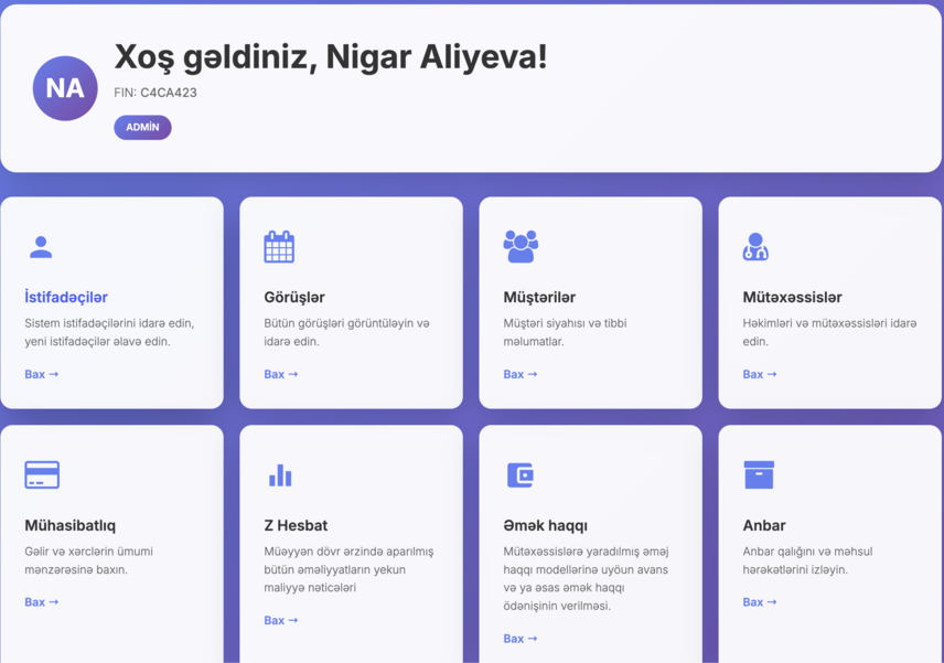 Müştəri qəbulu, işçi qrafikləri, xidmət idarəsi, maliyyə hesabatları və daha çoxu